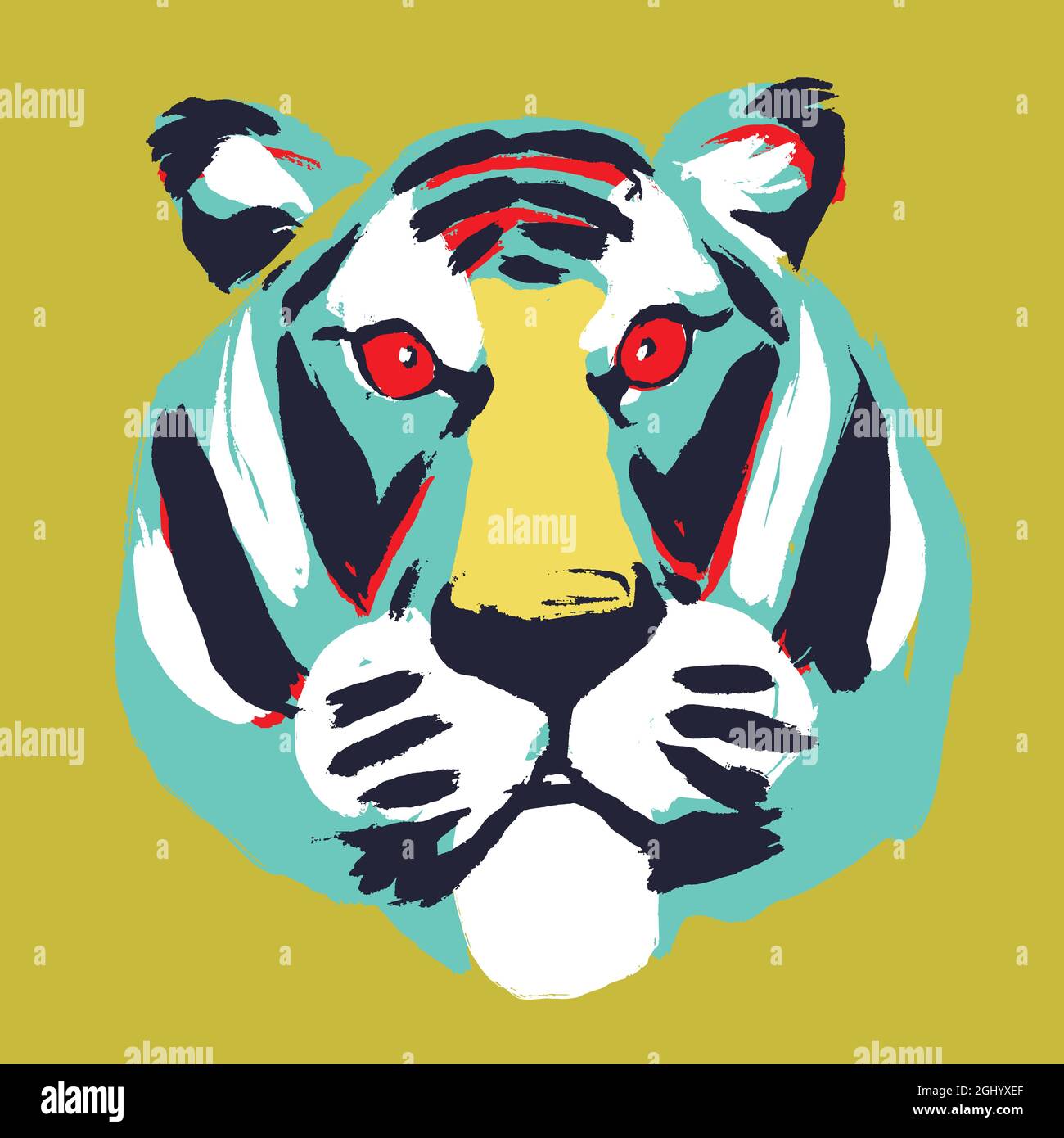 Abstract trendy drawing of a tiger. Colored head of a tiger. Isolated. Tiger - a symbol of 2022. Tyger the cat - tshirt print.