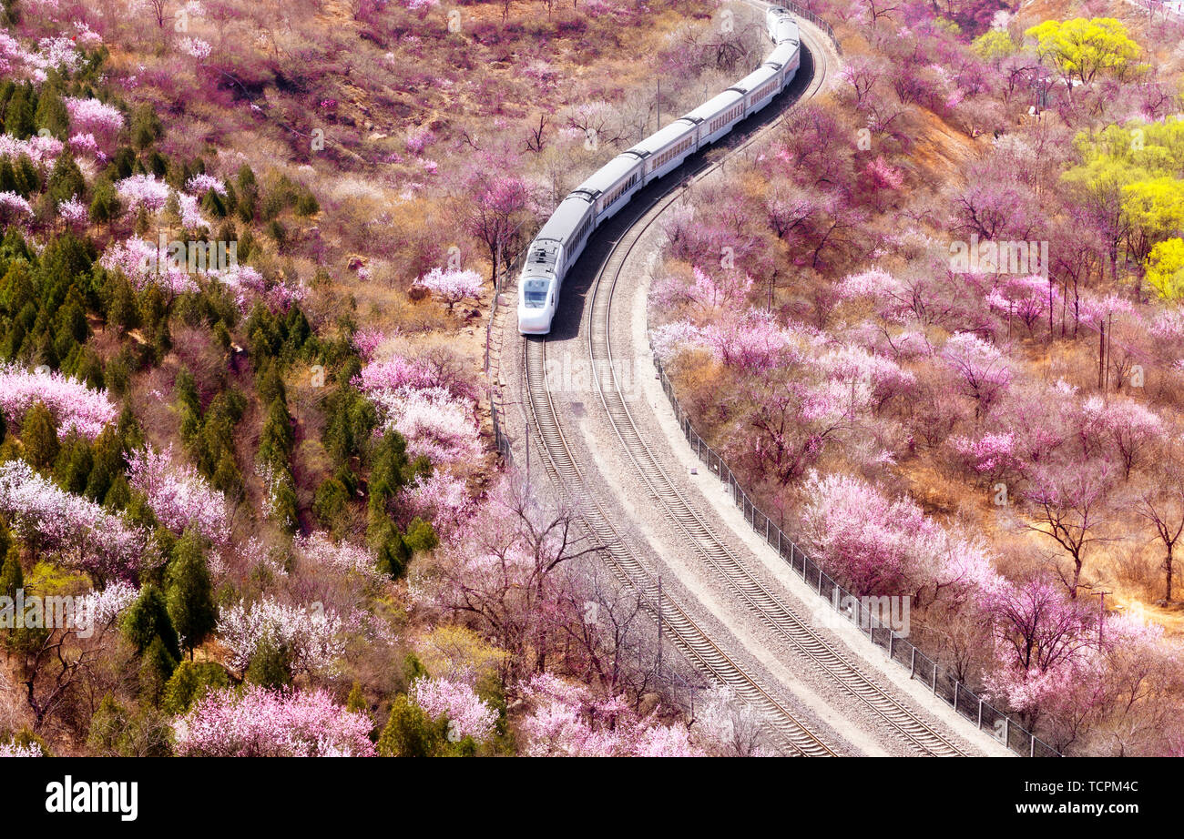 Beijing-Zhang Railway in Beijing, China, train for spring